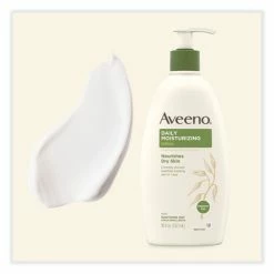 AVEENO® Daily Moisturizing Body Lotion helps improve the health of your dry skin in one day. Formulated with soothing oatmeal and rich emollients, it is clinically shown to help moisturize and relieve dryness. This daily body lotion replenishes moisture for softer and smoother skin. The unique oatmeal formula absorbs quickly, leaving your skin soft, beautiful and healthy-looking. Recommended by dermatologists, it is fragrance-free, non-greasy, non-comedogenic, and gentle enough for daily use.