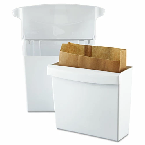The Rubbermaid Commercial Compact Sanitary Napkin Disposal Receptacle is space efficient and easy to service. This sanitary napkin disposal unit features a tight-fitting lid to control odor. Constructed from heavy plastic, the unit comes with 5 waxed paper bags for easy disposal of contents. Each feminine napkin disposal unit also has a removable rigid liner for easier maintenance and cleanup.