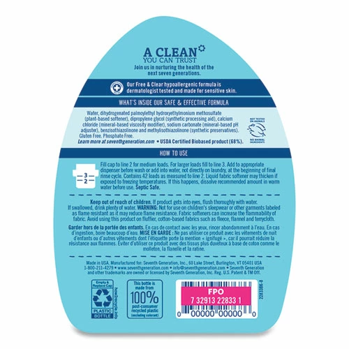 Be the first to review “Seventh Generation® Natural Liquid Fabric Softener, Free And Clear, 42 Loads, 32 Oz Bottle, 6/Carton” Cancel reply