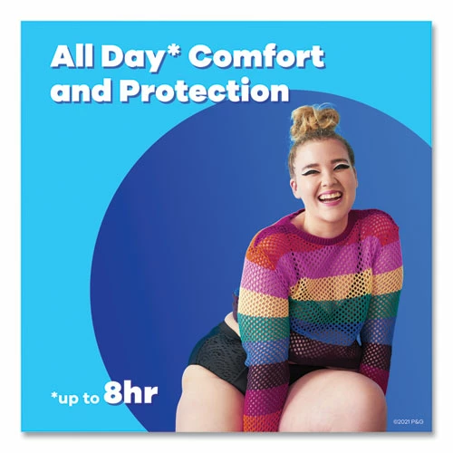 Discreet, purse-resistant wrapper with easy-to-open tabs.